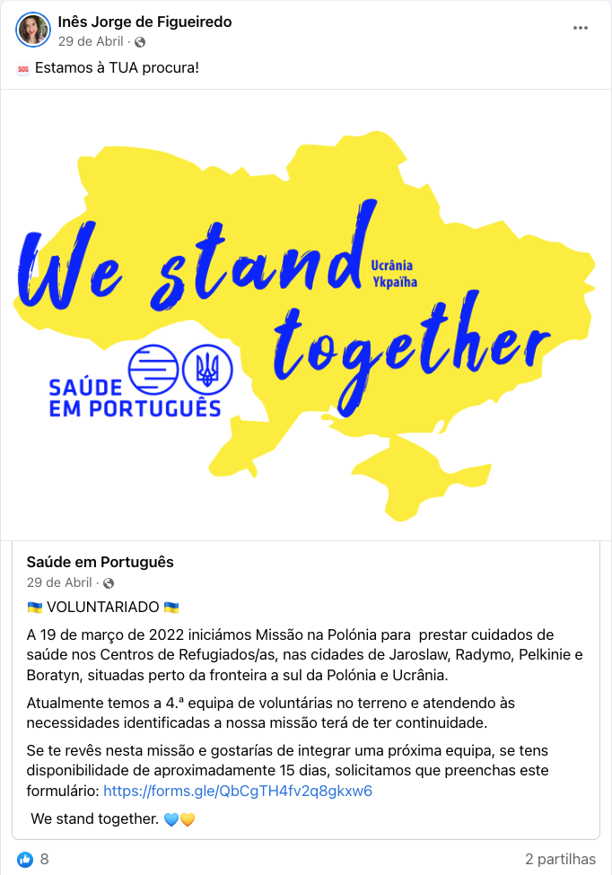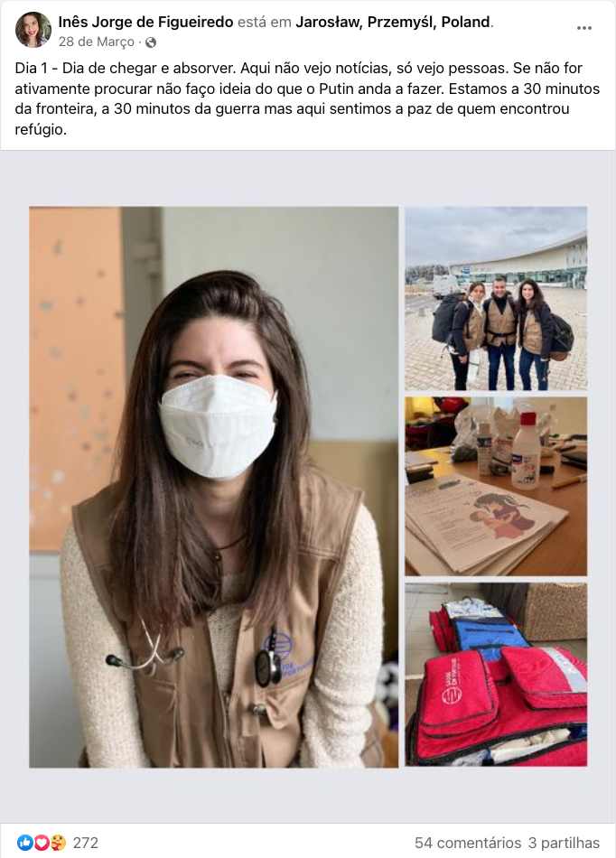 Estas são as partilhas que a Dra. Inês Jorge de Figueiredo, médica de família da USF Lusitana (Viseu), foi realizando durante a sua missão em Jaroslaw, no local de atendimento a refugiados ucranianos, entre 26 e Março e 7 de Abril de 2022.