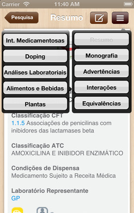 Uma das melhores aplicações móveis relativa aos medicamentos disponíveis em Portugal. Permite pesquisa por princípio activo ou por nome comercial. Para cada medicamento, apresenta o resumo, a monografia, as advertências, as interações (medicamentosas, doping, análises laboratoriais, alimentos e bebidas, plantas) e equivalência relativa a nomes do mesmo medicamento noutros países.